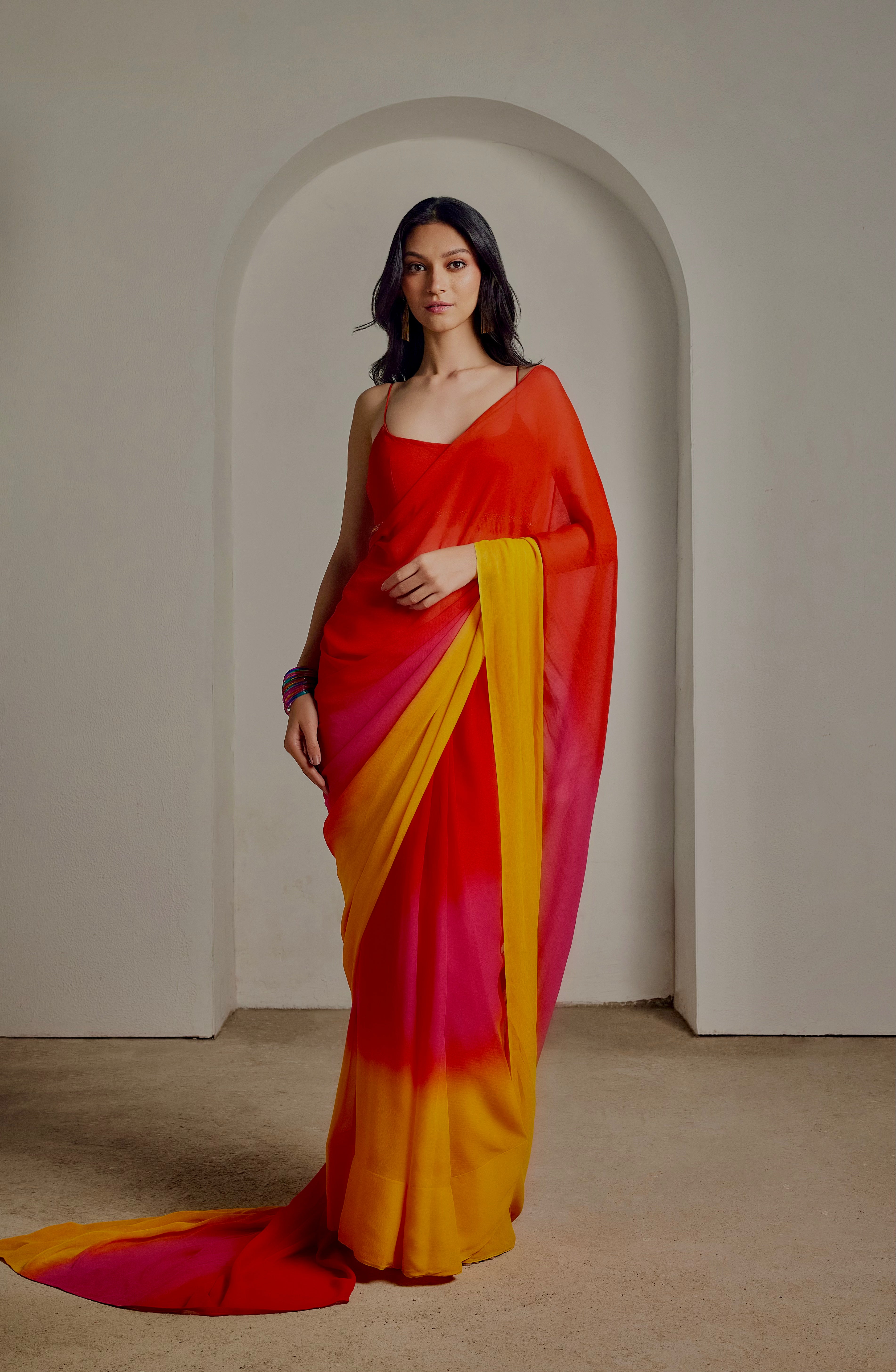 • Fabric: Both saree and blouse crafted in premium poly blend georgette