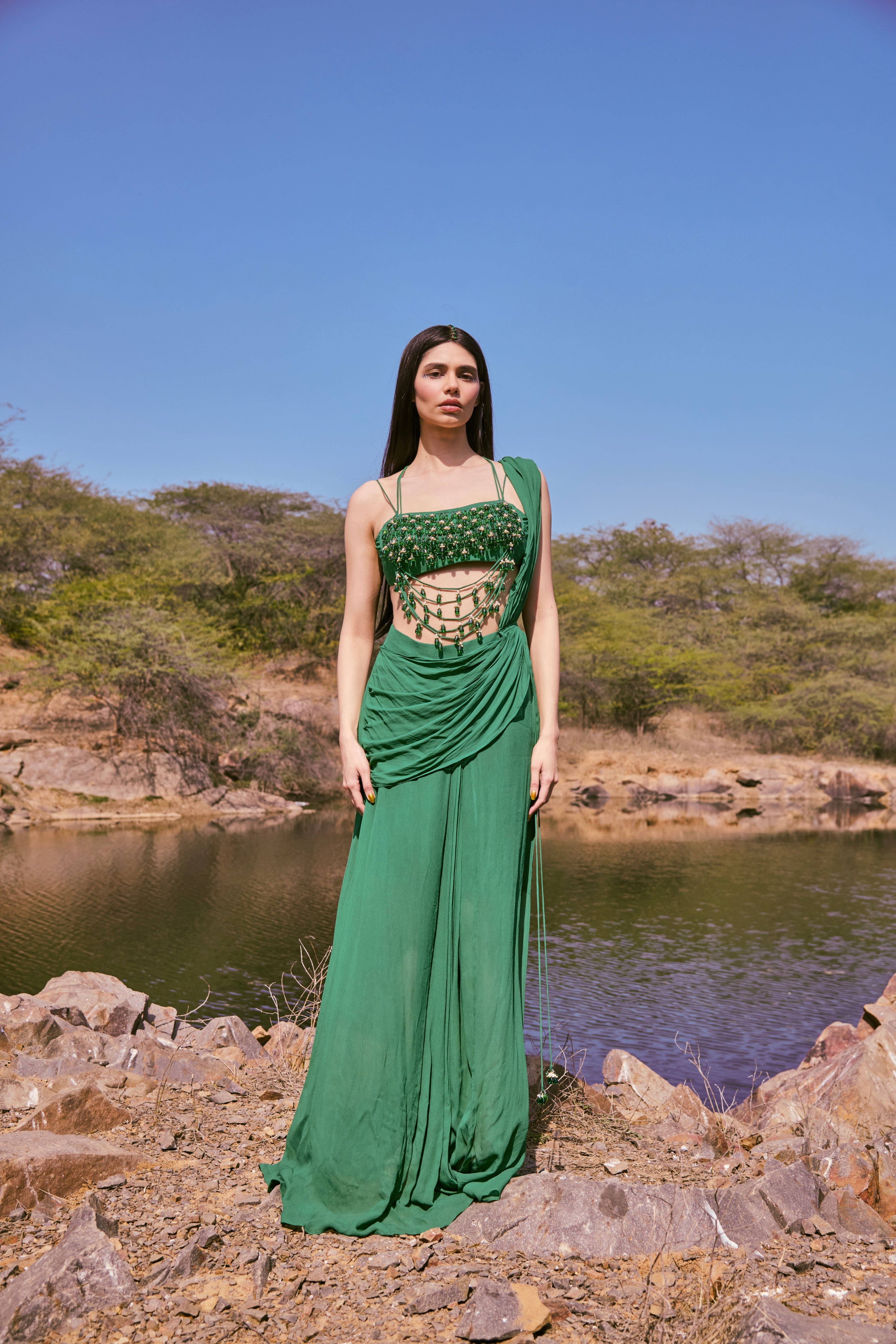 - Pre-Stitched Drape: Designed in a zip-up skirt style with pre-stitched pleats — offering a quick, easy, and elegant wear-without-effort experience.