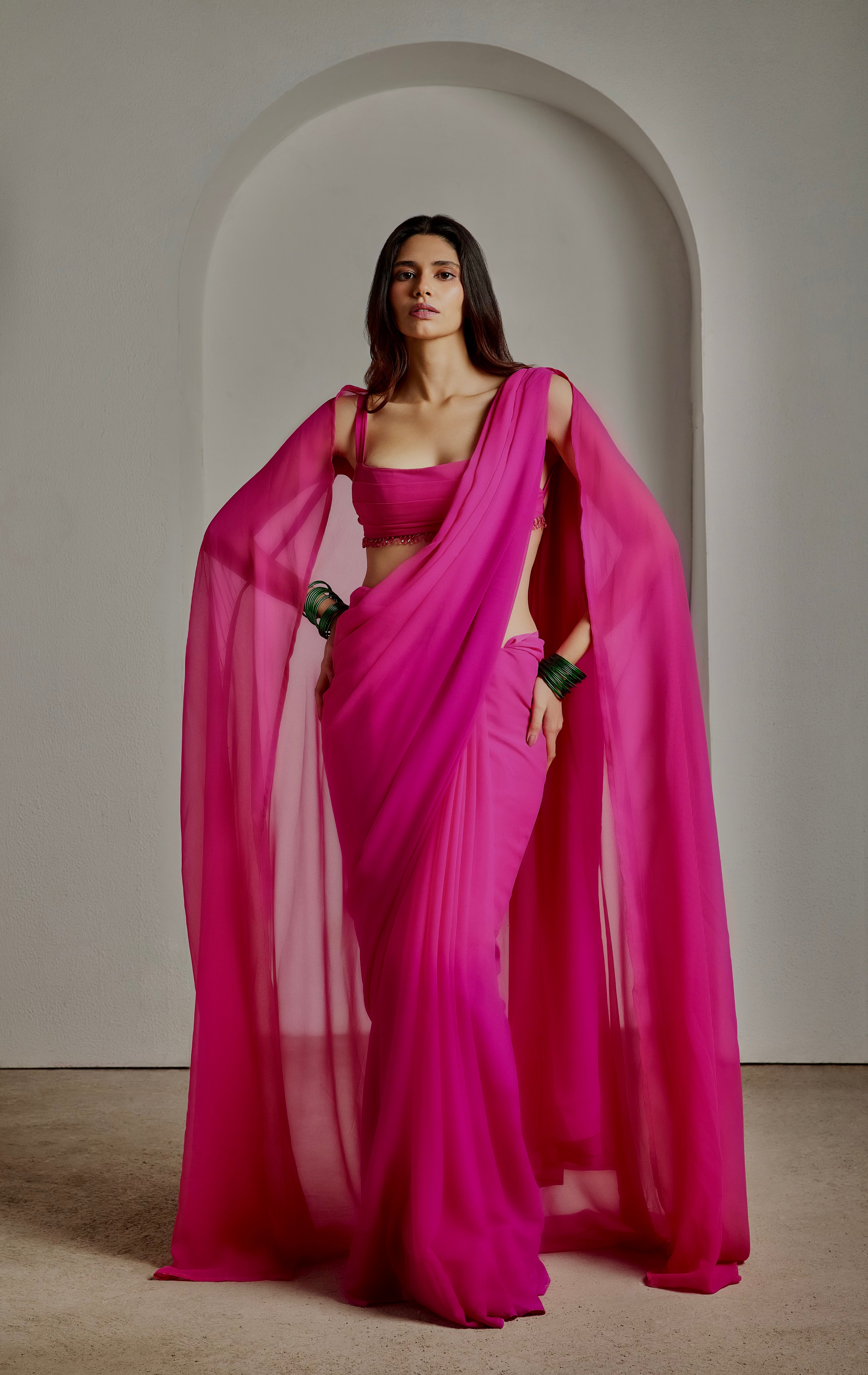 • Style: Classic normal drape saree for an elegant silhouette (Pre-pleated versions can be made too)