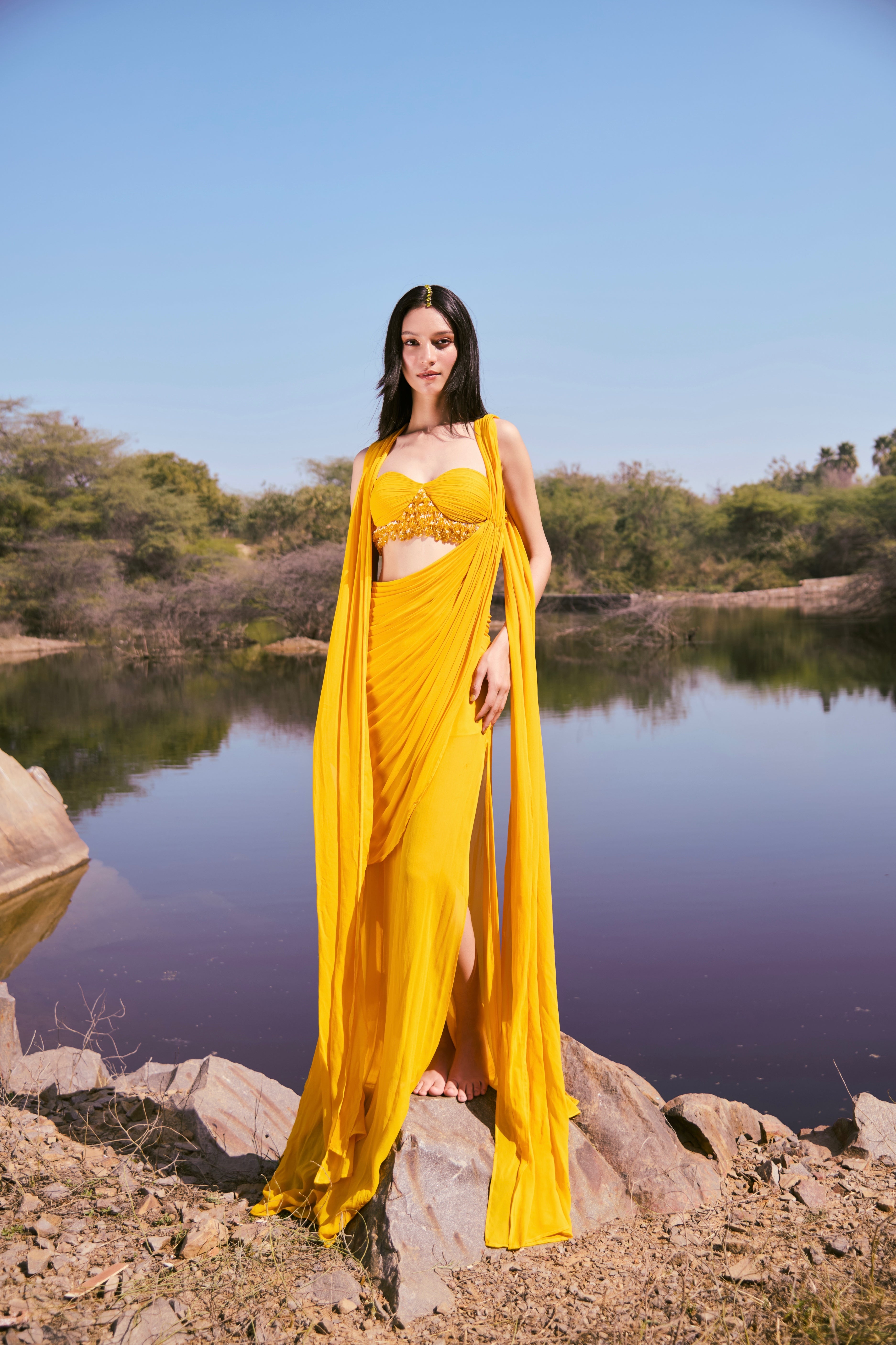 • Saree Type: Pre-stitched saree for effortless draping and a ready-to-wear experience